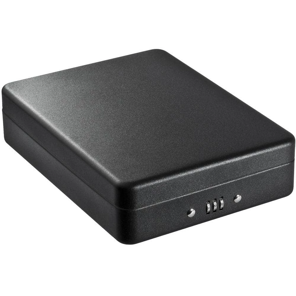 The compact combination safe by BARSKA features a solid steel construction in a compact lightweight design. This easily portable design can be stored and hidden away for safekeeping. Included with the safe is a long self-locking security cable to keep your valuables safely attached to a large fixed object. Ideal for safely storing money, passports and jewelry.
