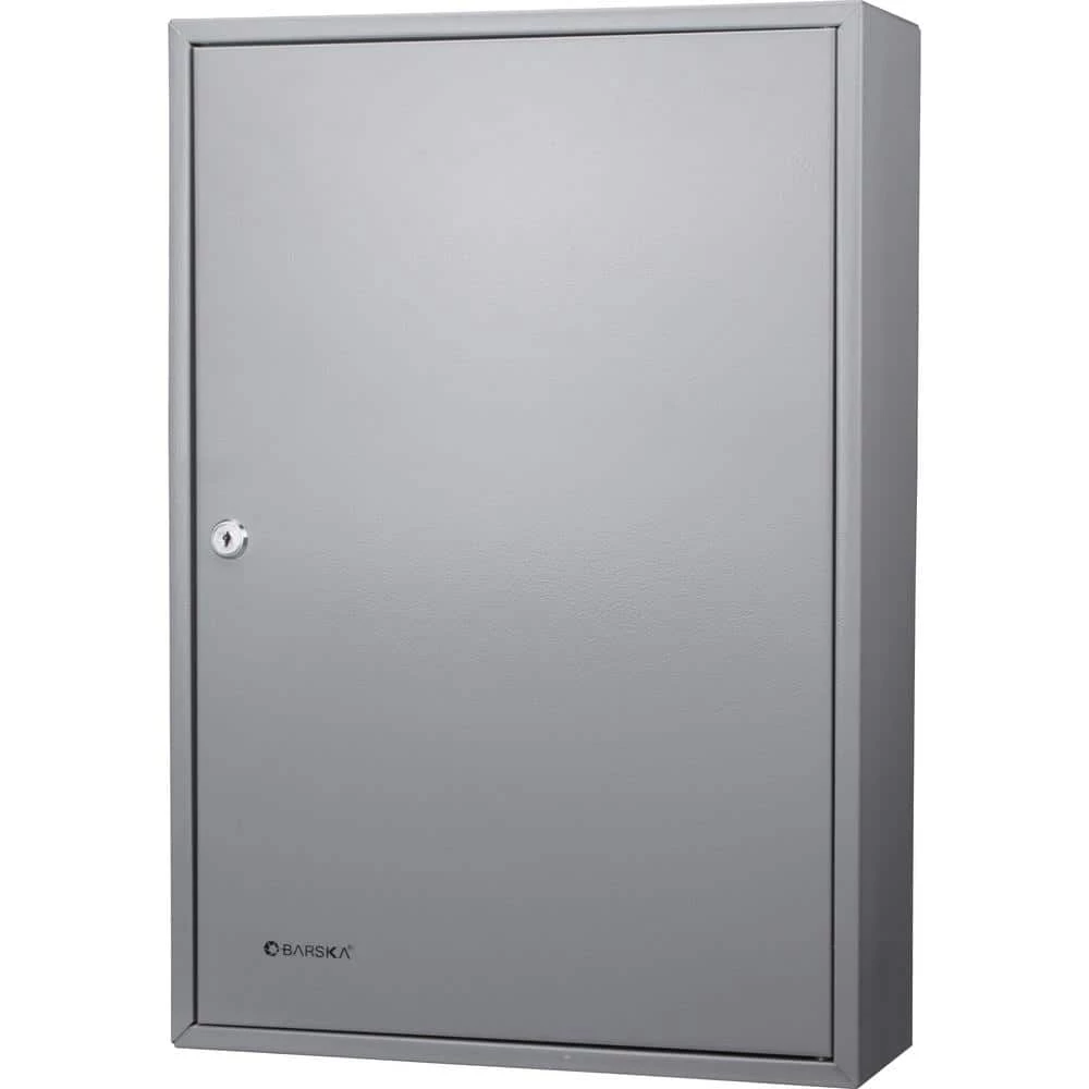 The 150-Position Key Lock Box features a hook-style cabinet that makes key organization easy and convenient. Inside the cabinet are 6 rows of color-coded and numbered hooks, each of which is easy to access and keep track of thanks to the included key index. The 2-sided indexing chart has ample room to document the keys hook position corresponding lock, and a drop-in plastic sleeve tethered to the hinge inside the safe provides a hands-free reference. The safe has 4 pre-drilled mounting holes and included hardware for installation. The safe walls and door are constructed of 0.8 mm solid steel and finished with a grey coating. Ideal for home, office, apartment complexes, rental management companies, car lots, body shops, and many more. Backed by 1-Year Limited Warranty.
