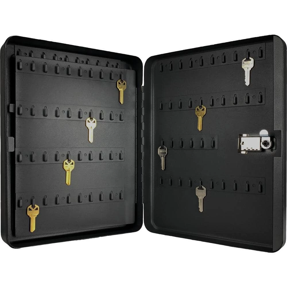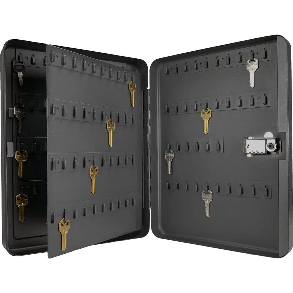 The 156 Keys Lock Box with Combination Lock, Black by Barska features a hook-style cabinet that makes key organization easy and convenient. Inside the cabinet, are four rows of hooks, each of which are easy to access and organized. The 156 Keys Lock Box with Combination Lock, Black by Barska has pre-drilled anchor holes and including mounting hardware for quick installation. The safe’s exterior is constructed of 0.8mm solid steel and finished with a black coating. This lock box is ideal for home, office, apartment complex, rental management companies, car lots, body shops, and many more. All Barska cabinets are backed by a 1-year limited warranty.