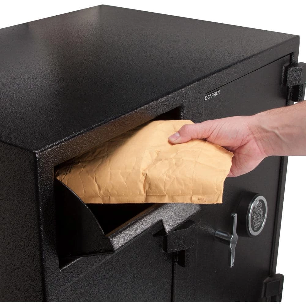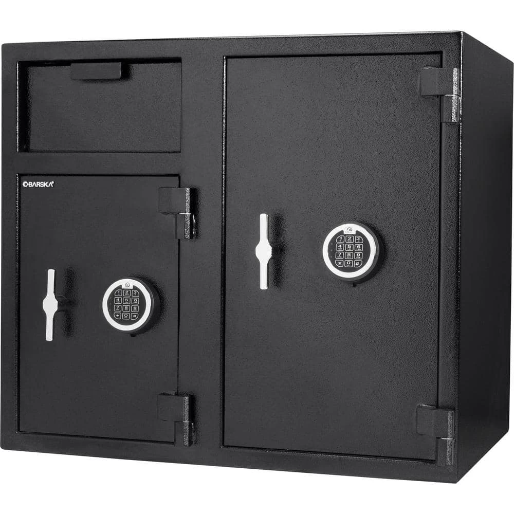 The Barksa Rotary 2-Door Keypad Depository Safe by BARSKA is an important tool in safeguarding items from unauthorized users. Instead of leaving large bills inside the cash register simply drop it into the rotary drop door on top of the safe where it stays safely out of reach. The 2.58 cu. ft./4.68 cu. ft. Rotary 2 Keypad Depository Safe by BARSKA is a simple and secure solution for businesses that need to protect their deposits before they need to go to the bank. Ideal for convenience stores, restaurants, hotels/motels and other cash businesses.