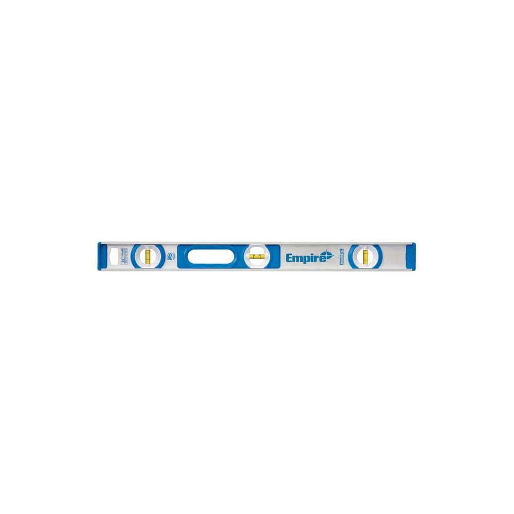 The Empire 24″ Aluminum Magnetic I-Beam Level offers users superior functionality, durability and performance with high-contrast vial surrounds for easy viewing. The magnetic level provides accuracy within 0.0005 inch per inch in all working positions. The I-Beam level has an all-metal frame for long-life accuracy and is equipped with impact-resistant end caps to withstand the harshest jobsite conditions. This aluminum level is part of the 500 series and features a top-read window for clear overhead viewing and has built-in molded grip zones for enhanced portability. The magnetic level utilizes a high-strength continuous magnetic edge which provides users with maximum holding power when measuring door frames, steel studs, ferrous pipe, and other common metal-working applications. Empire backs their aluminum I-Beam levels with a limited lifetime warranty.