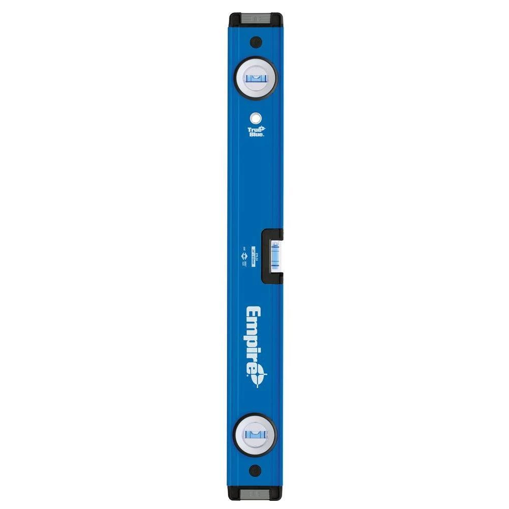 The Empire 12 in. True Blue Magnetic Tool Box Level offers superior performance in functionality and durability. The box levels are constructed with an all-metal frame as well as top and bottom precision-milled edges to deliver accuracy to within 0.0005 in. in all working positions. The reinforced locking system secures the vial settings and guarantees long-life accuracy. It is also equipped with rubber shock-resistant endcaps that are tool-free removable to enhance scribing performance into corners. Magnetic models boast high-strength rare earth magnets for superior holding power when working with door frames, steel studs, ferrous pipe and other common metal-working applications. Designed to fit easily in your toolbox and handle almost any leveling need, it features a Vari-Pitch vial that reads slope or pitch in inches per foot. This makes it ideal for setting up a grade or measuring a slope.