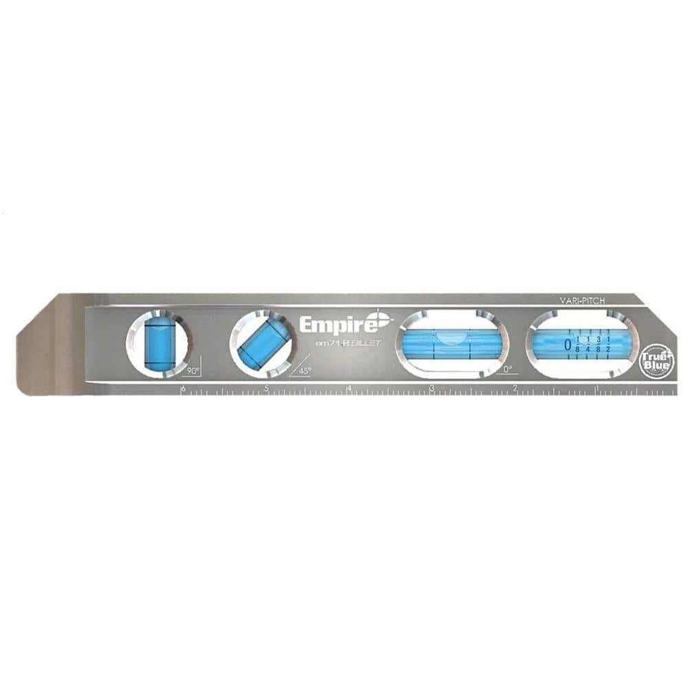 The True Blue e105 Series Digital Level offers accuracy, superior protection and an advanced feature set. With quicker set-up time, Empire’s Digital Levels are engineered to provide fast and accurate readings in 7 different measuring modes and include large, easy to read dual backlit displays. For added durability, the True Blue Digital Level is IP65 Rated to protect against dust and water as well as extreme jobsite conditions. All 24 in. plus Digital Levels come with a protective storage case. The Empire 8 in. True Blue Magnetic Billet torpedo level features True Blue vials that deliver best-in-class accuracy and anodized aluminum, allowing this billet to deliver unparalleled strength and durability. The Empire True Blue Laser Etched 7 in. Rafter Square (e2994) features permanent laser markings for superior readability in any light condition. SCRIBE-GUIDE precision scribe notches allow users to easily mark parallel lines on lumber.