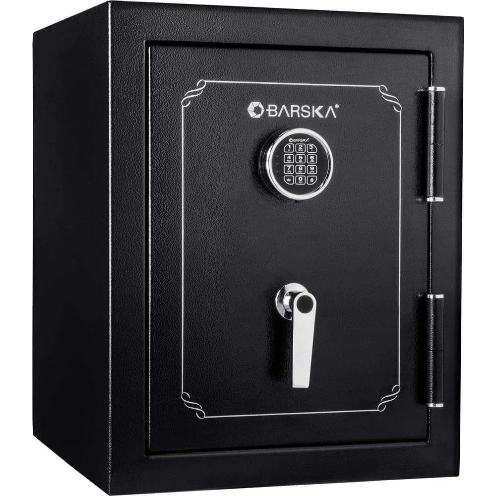 Keep your valuables secured and protected with the 3.51 cu. ft. Fire Vault Safe from BARSKA. A solid fireproof steel construction and 3 solid-steel locking deadbolts ensure that only the authorized users who know the PIN Code can access the contents inside. A fully carpeted interior further protects the valuables within and 2 adjustable shelves can be positioned in multiple configurations.