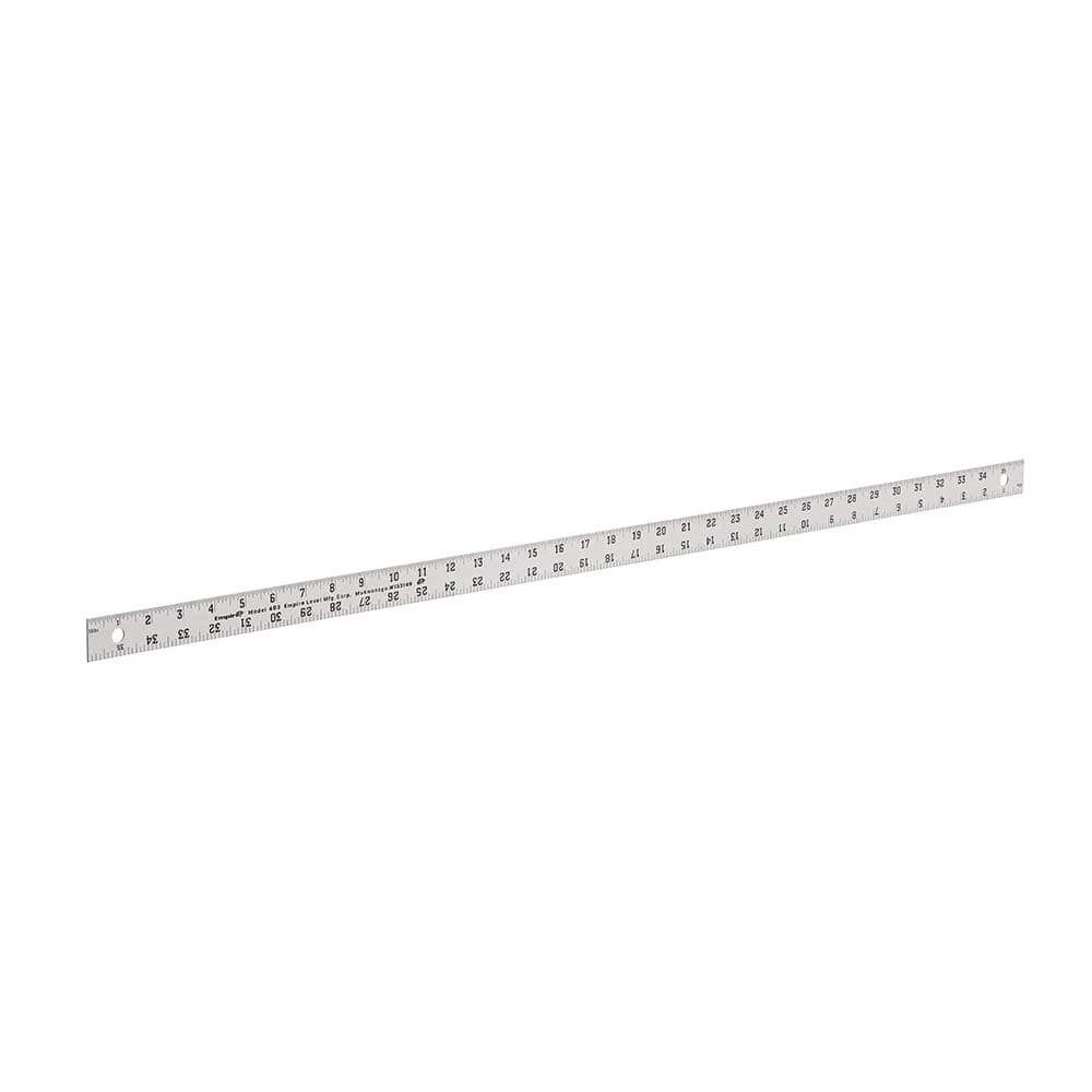 The Empire 36 in. Aluminum Straight-Edge Ruler is great for measuring surfaces up to 3 ft. It is made with heavy-duty aluminum for durability. Features easy-reading inch-scale graduations for greater precision. Its straight edges are also ideal for tracing and drawing straight lines, and the ruler includes a built-in hole for storage. Lifetime limited warranty.