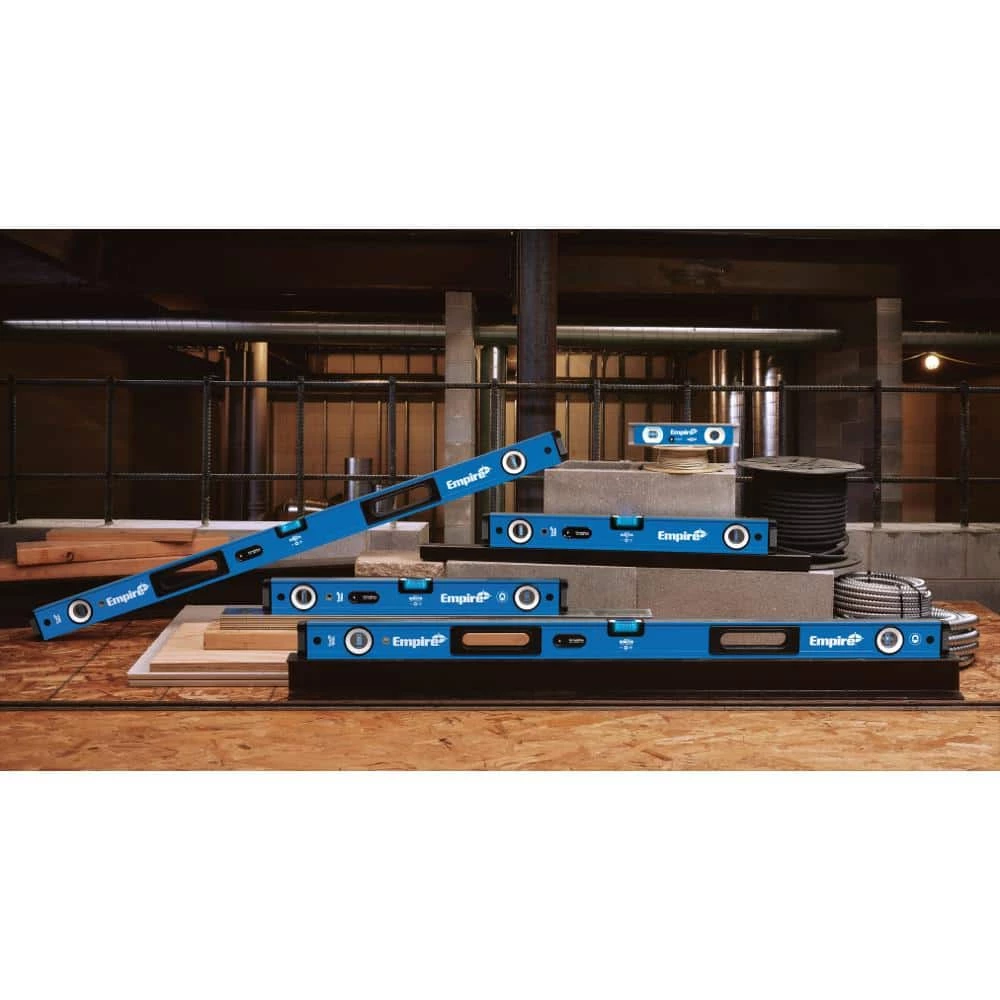 Empire is committed to delivering innovative solutions designed to meet the needs of the modern jobsite. The em95 UltraView LED level combines the professional features of the 75 True Blue box level with the patented, UltraView technology to provide superior vial visibility in dark, low and bright light applications. The patented, UltraView system uses dual LEDS, optical brightener and e-Band vials to provide high definition viewing in all conditions. Its IP54 rating meets the durability demands of the jobsite by protecting it from dust and water.