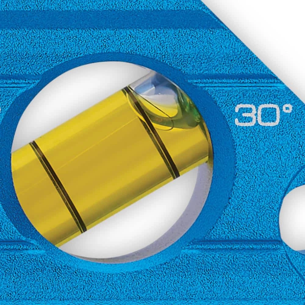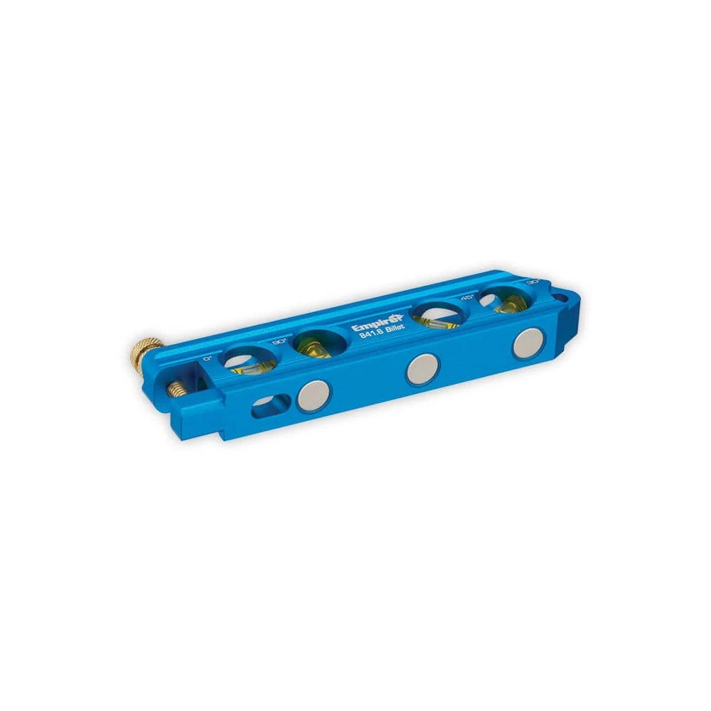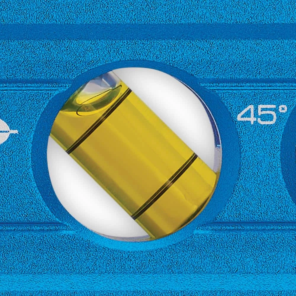 Empire’s Magnetic Billet Torpedo Level is constructed of anodized aluminum alloy for strength and durability. The attractive blue level features vials that display angles of 0°, 30°, 45° and 60°. Powerful neodymium magnets provide superior holding strength so you can work without holding the level. This level features a convenient V-Groove for pipe and conduit work and a No-Dog feature to eliminate dog-legs in offsets and saddles.