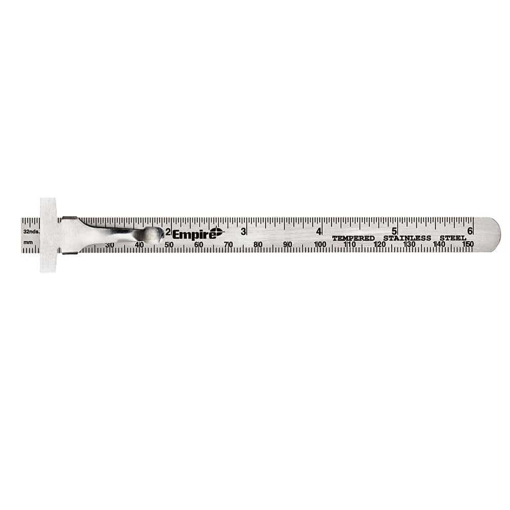 The Empire 6 in. Pocket Ruler is designed to fit conveniently in most pockets. The ruler is crafted with stainless steel and features etched black graduations for strength and longevity. It has both metric and in. measurements that measure down to 32nd’s and millimeters. Attached to the ruler is a metal clip for easy fastening to any belt and pocket. 1-year limited warranty.