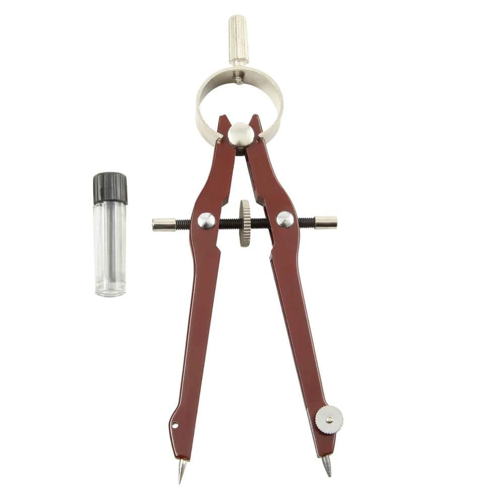 This pencil compass has a hardened and tempered bow spring. The adjustable nut allows for quick and easy movement. It can draw an arc or circles up to 7-1/4 in.