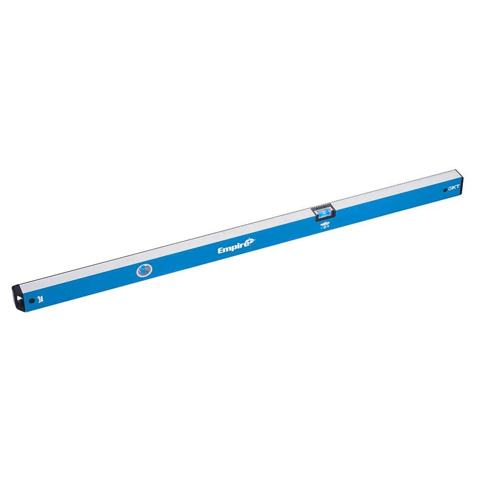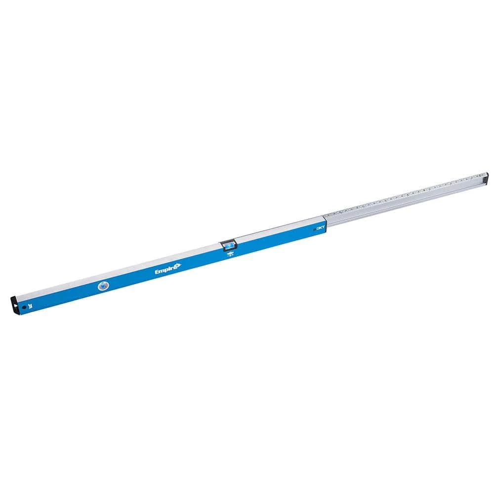 The Empire Green Self-Leveling Cross Line Laser provides a bright, durable and compact, alkaline powered laser level solution that can assist in a variety of layout applications. With a working range of up to 75 ft., the bright green laser provides pronounced visibility when working even in well-lit conditions. The green line laser is powered by 4 AA Alkaline batteries giving users up to 15-hours plus of continuous runtime, allowing for less downtime versus competitive alkaline laser solutions. This green line laser level also features a locking pendulum and rugged over-molded housing that withstands impact if dropped and maintains proper calibration. The green laser level has a fixed versatile 360° L-bracket with oversized rare earth magnets and rubber standoffs. The Empire 48 in. – 78 in. True Blue Extendable Box Level provides users with the most versatile performance with the ability to extend for exact fit in any job. The extension box level enables users to achieve a perfect fit in custom or odd size applications and constant surface contact for an accurate read across the full length of material. The adjustable sizing allows users to carry less and do more with the ability to replace up to 3 level sizes and maintain productivity with this all-in-one solution. The Empire patented e-Band Vial Technology provides users with superior readability and reliable 0.0005 in./in accuracy.