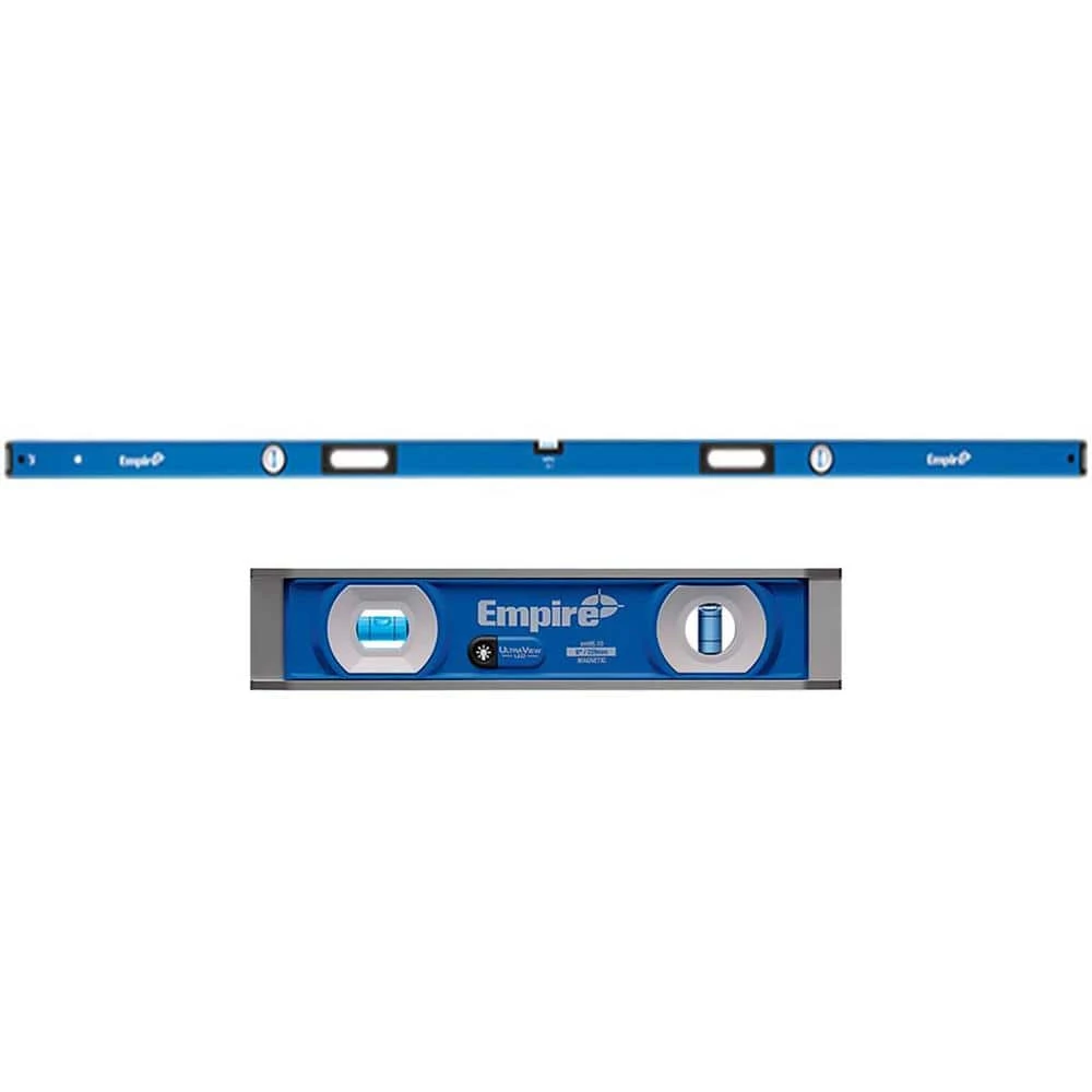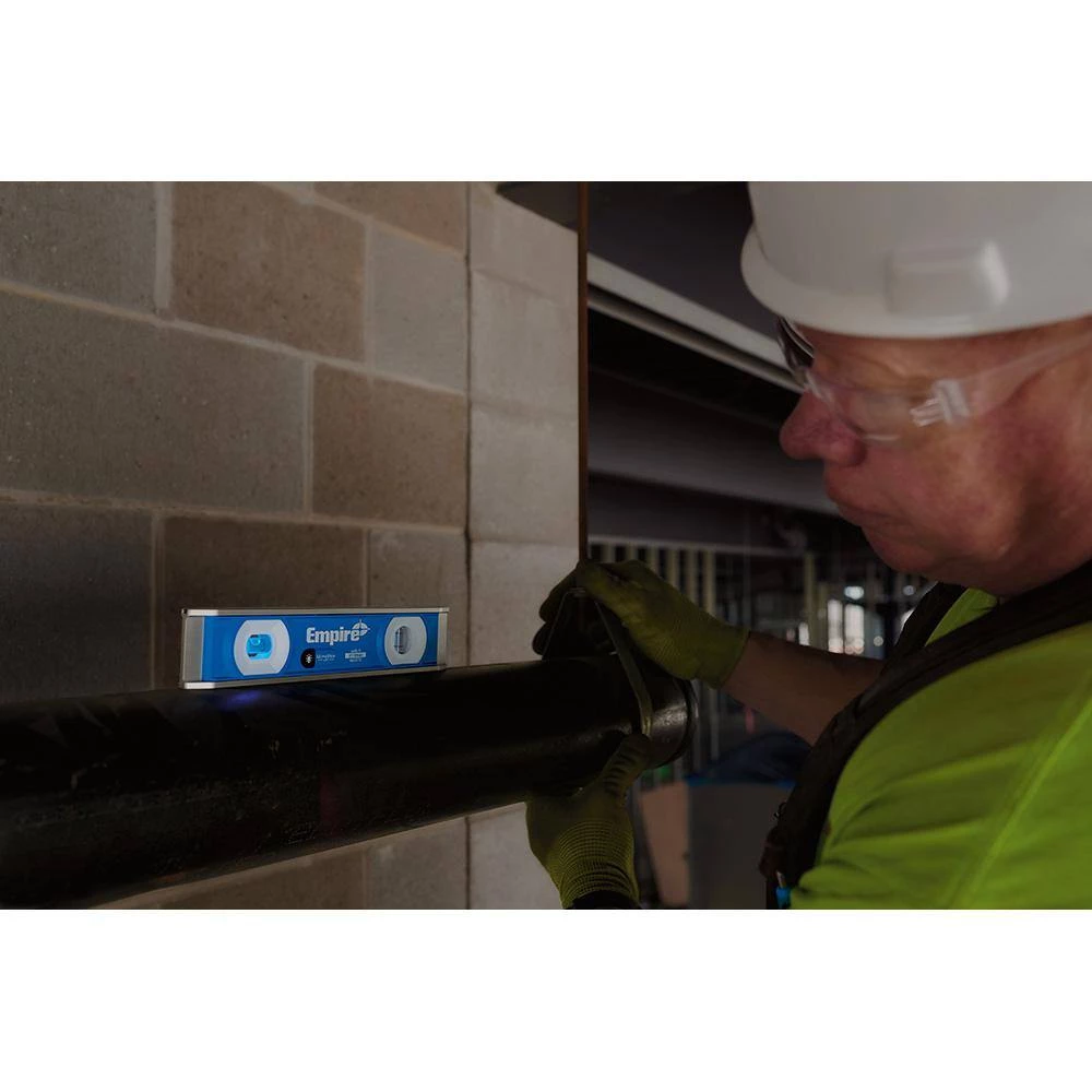 As the dominant market leader in levels, squares and marking products, Empire Level is committed to delivering innovative solutions designed to satisfy the needs of the modern jobsite. The e75 Series True Blue Box Level offers superior performance in the key areas of functionality and durability. The box levels are constructed with an all-metal frame as well as top and bottom precision-milled edges to deliver accuracy to within 0.0005 in. in all working positions. For added durability, the e75 series features a reinforced locking system that secures the vial settings and guarantees long-life accuracy. The e75 box level also equipped with rubber shock-resistant endcaps that are tool-free removable to enhance scribing performance into corners. Magnetic models boast high-strength rare earth magnets for superior holding power when working with door frames, steel studs, ferrous pipe and other common metal-working applications. The em95 UltraView LED Torpedo Level combines the professional features of the Empire True Blue Torpedo Level with the patented, UltraView technology to provide superior vial visibility in dark, low and bright light applications. The patented, UltraView system uses dual LEDS, optical brightener and e-Band vials to provide high definition viewing in all conditions. Its IP54 rating meets the durability demands of the jobsite by protecting it from dust and water.