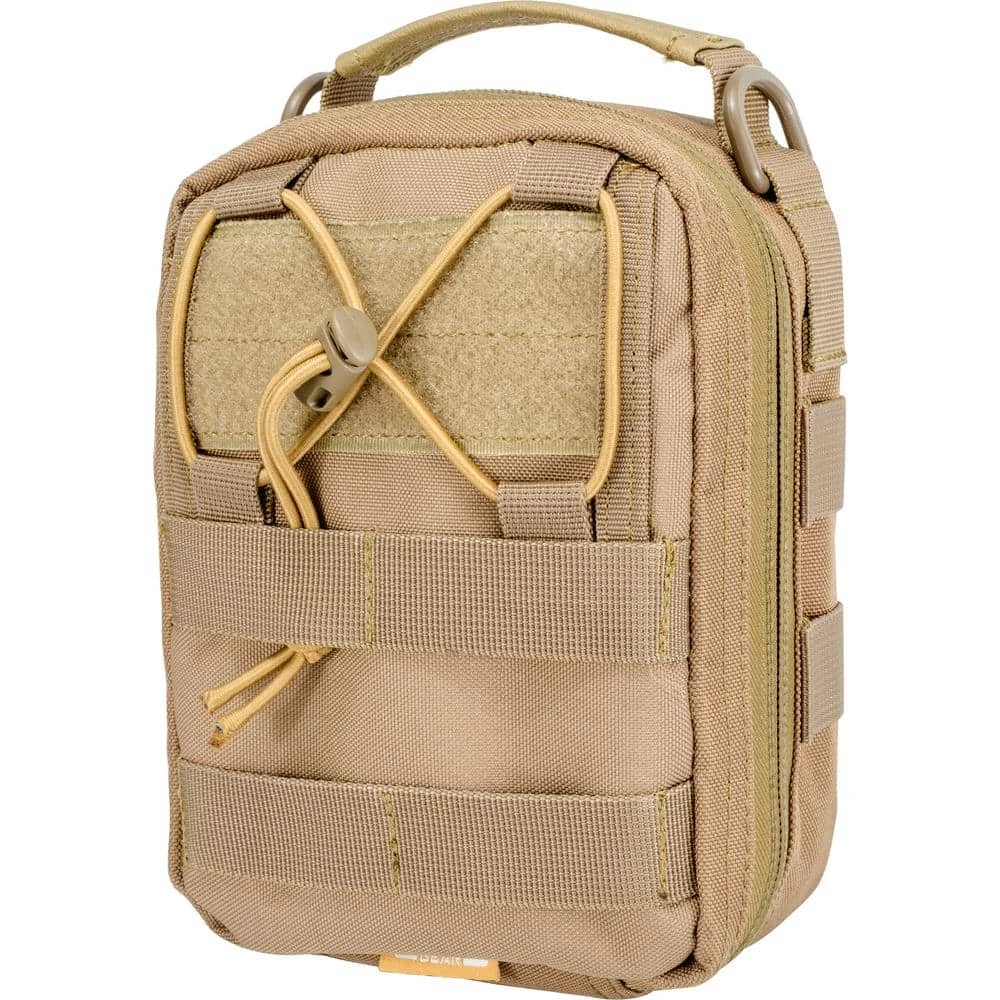 The Loaded Gear CX-900 First-Aid Utility Pouch (Flat Dark Earth) by BARSKA keeps emergency medical supplies organized and close at hand. Using the standard MOLLE webbing attachment system, the CX-900 Medical Pouch can be attached to tactical vests and backpacks to ensure that first-aid supplies are readily accessible. NOTE: First-aid supplies are sold separately.