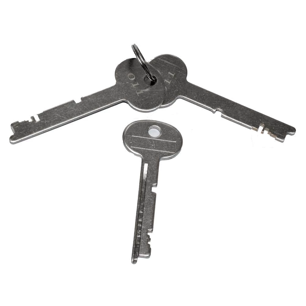 - Includes 3 keys (1-set for first lock, singular key for second lock), and mounting hardware