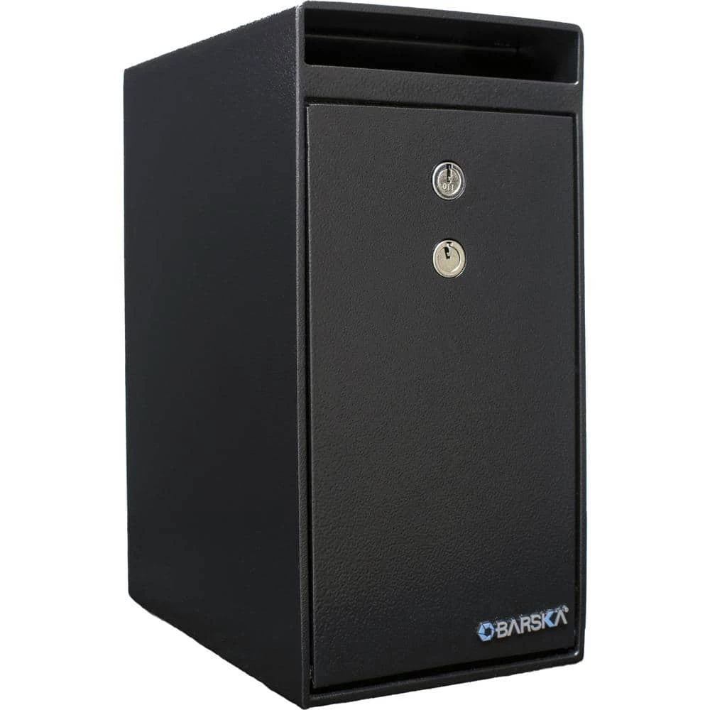 The 0.27 Cu. Ft. Dual Key Depository Safe by BARSKA is a great way to keep cash and checks in a secure location. An anti-fish slot, dual key lock and bottom dead bar increases security. The mounting kit for securing on the floor or counter is included. Pre-drilled anchor holes makes for easy assembly. The 0.27 Cu. Ft. Dual Key Depository Safe by BARSKA is ideal for convenience stores, restaurants, hotels/motels, and small cash businesses.