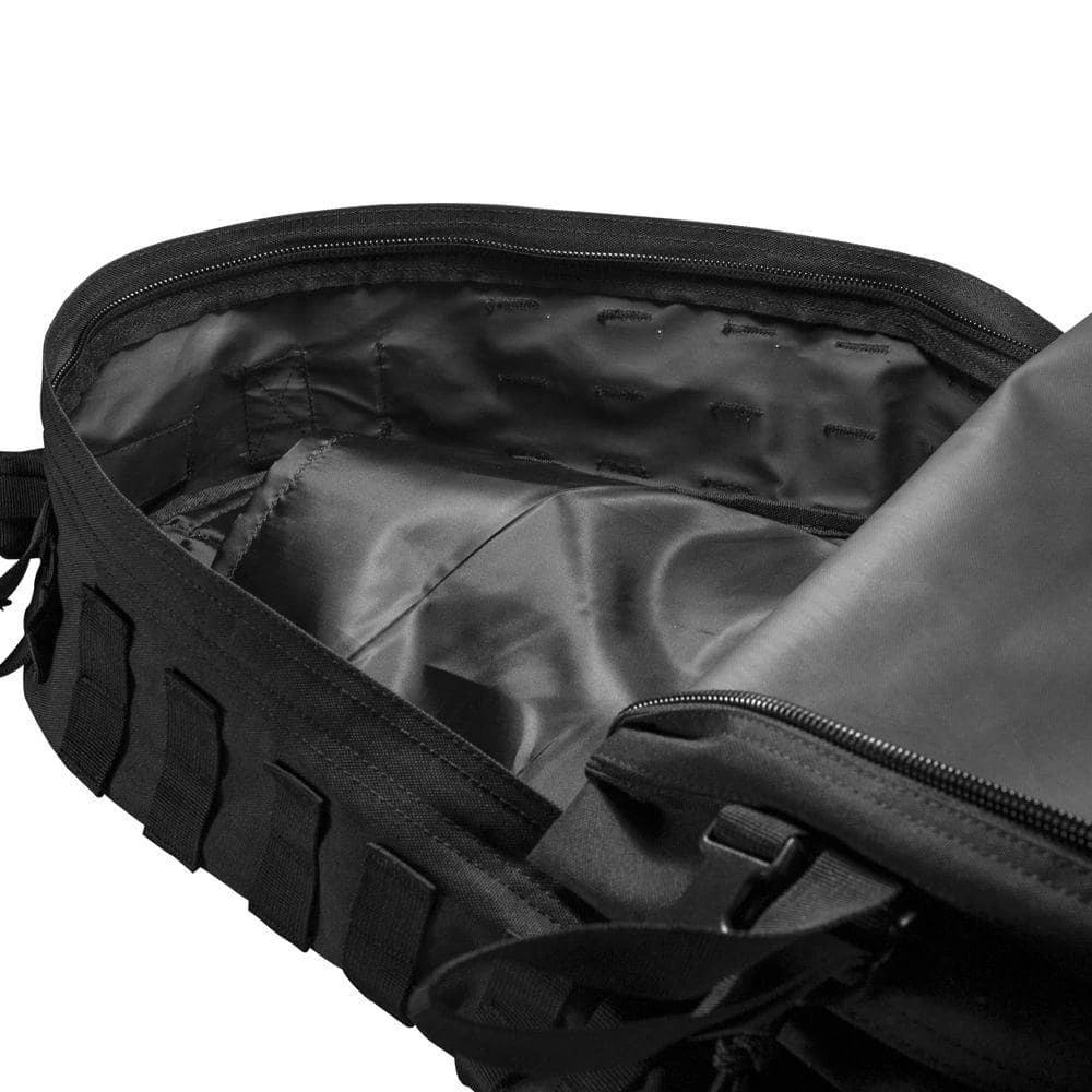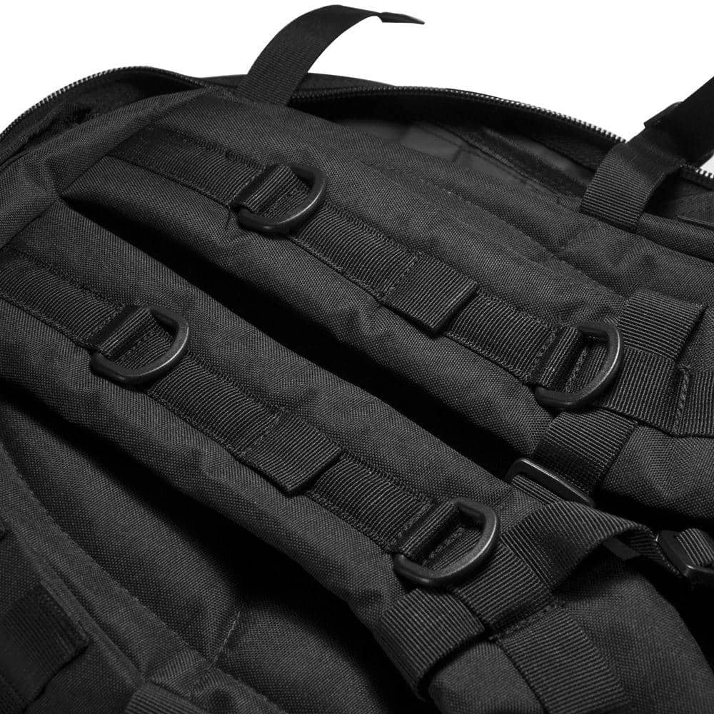 2-Main compartments and 1-smaller compartment. Ergonomic S-curve padded shoulder straps. Front and side 1 in. web system for attaching extra accessories. Reinforced top carrying handle for an alternative carrying position. Padded back with large hook and loop fastner area for attaching patches or name tapes. Side compression straps and sternum straps for the chest and padded waist belt.