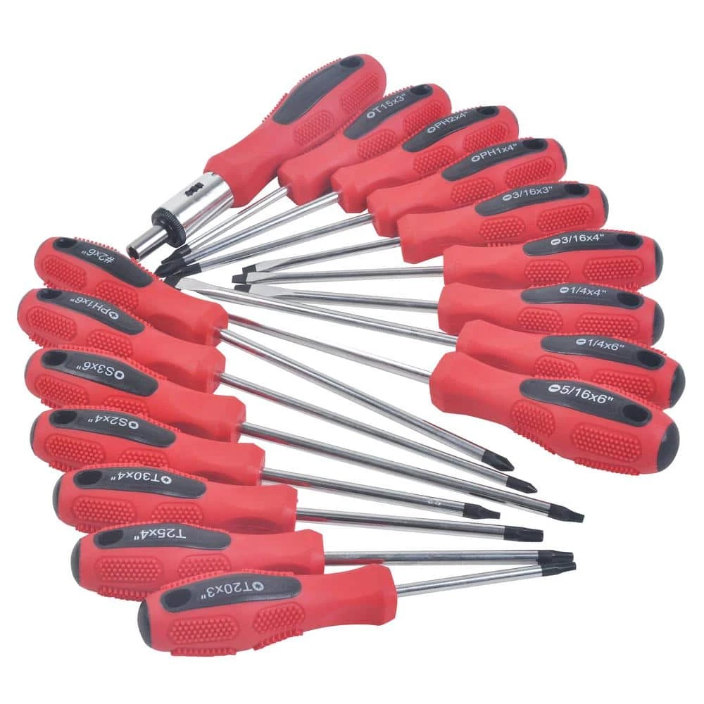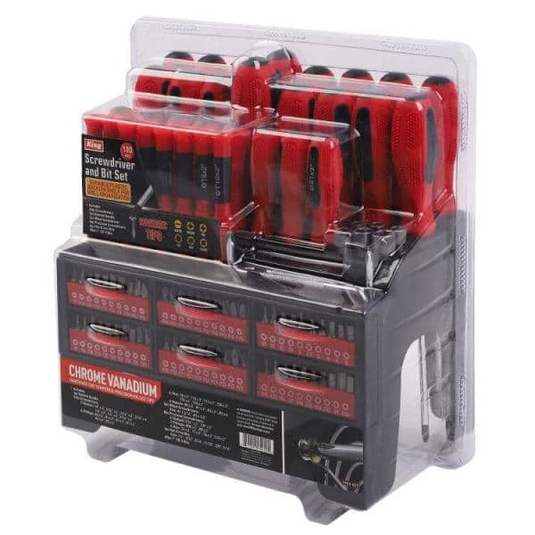 KING’s Screwdriver and Bit Set (100-Piece) is the ideal gift for any handyperson in your home. The screwdrivers and bits are made from tempered and harden steel and are made with precision equipment for superior performance and durability. The screwdriver handles are made from ergonomic rubber material for comfort and easy grip. This set includes 23 screwdrivers, 2 offset screwdrivers, 8 precision screwdrivers, 6 nut driver bits and sixty 1 in. CR-V bits.