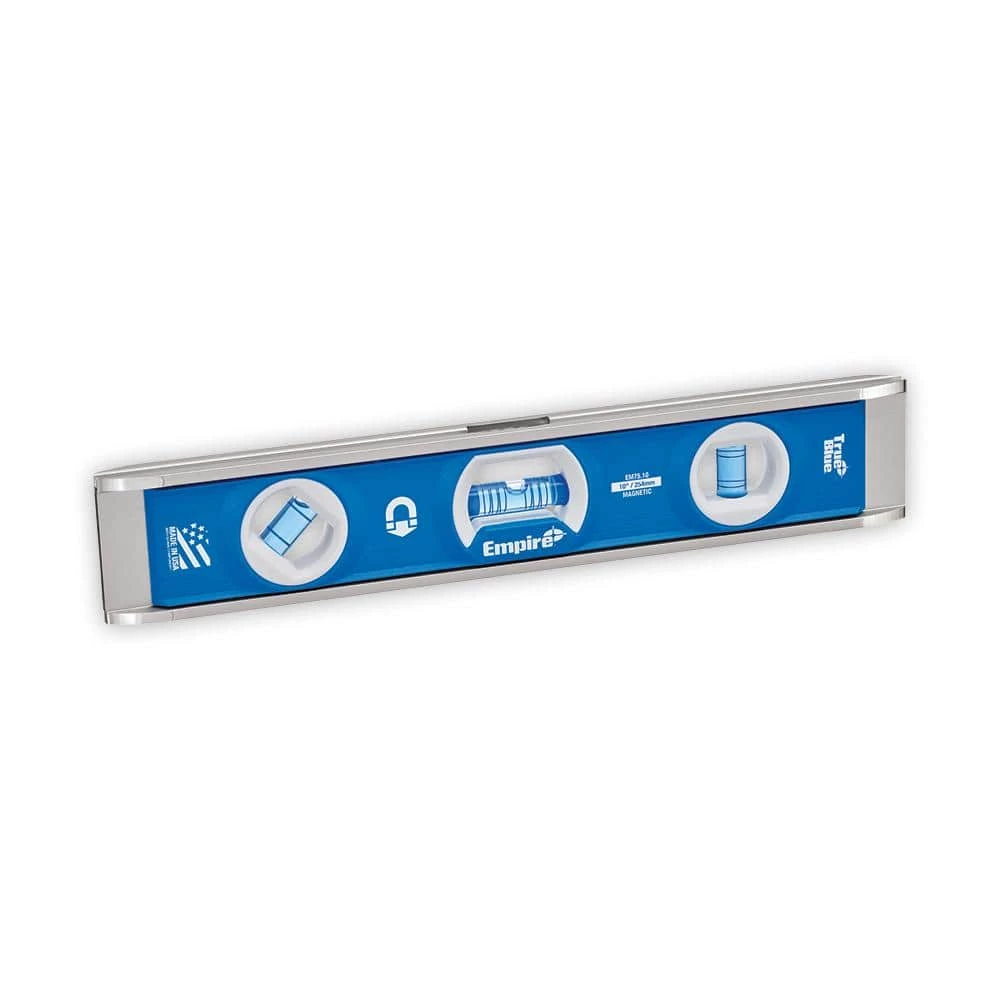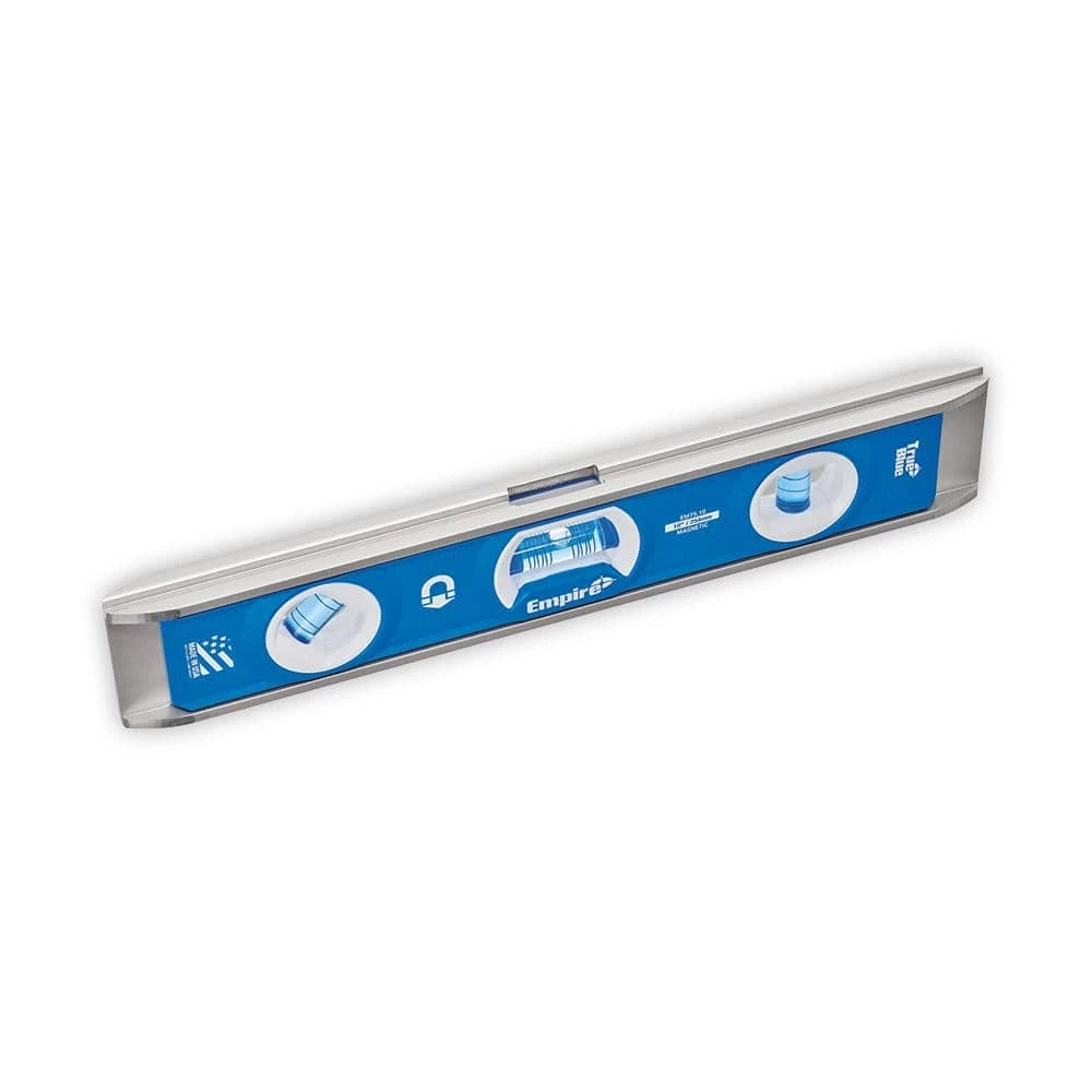 The Empire em75.10 True Blue heavy duty torpedo levels features a tough all metal frame to stand up to tough jobsite conditions. High strength rare earth magnets deliver a strong hold to metal materials. The em75.10 also features a top ruler and pipe groove that is compatible with any straight edge to extend the working surface for measuring and scribing, while surface grip provides stability against any material. e-Band vials highlight the meniscus of the bubble to prove a clear reading at plumb and 45°, while Empire’s Dual-Pitch(tm) vial can read slope at 1/8 in. and 1/4 in. increments in either direction. The em75.10 Empire Level in Mukwonago, WI and backed by a Limited Lifetime Warranty.